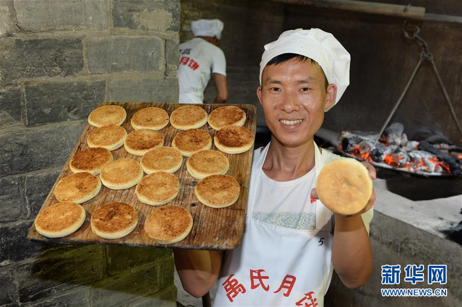 8月25日,在贵州省榕江县寨蒿镇,一家麻饼作坊的工作人员展示刚烤好的麻饼。 贵州省榕江县寨蒿镇是历史悠久的商贸古镇,当地居民制作的“寨蒿古法炭烤麻饼”延续200余年。如今,炒面、制馅、包心、沾麻、炭烘烤等古法制作工艺仍在使用,主要制作材料大多源自本地。每年中秋前夕,寨蒿镇的多家作坊忙着开工制饼,产品深受当地及周边群众喜爱。 新华社记者 杨楹 摄