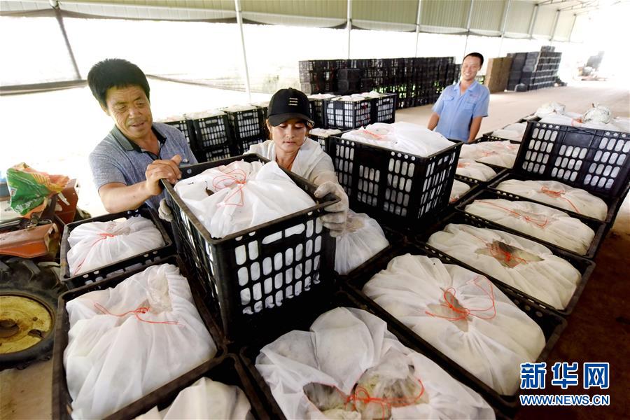 8月25日,河北省威县袁家庄村梨农在库房搬运梨果筐。新华社记者 朱旭东 摄