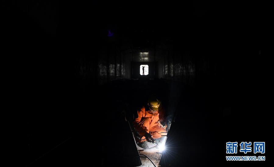 8月25日,在银西高铁马坊沟特大桥施工现场,工作人员在进行特大桥连续梁合龙施工。马坊沟特大桥连续梁顺利合龙,标志着银西高铁宁夏段建设开始转入架梁以及桥梁上部铺设道砟、轨道等施工阶段。新华社记者 王鹏 摄