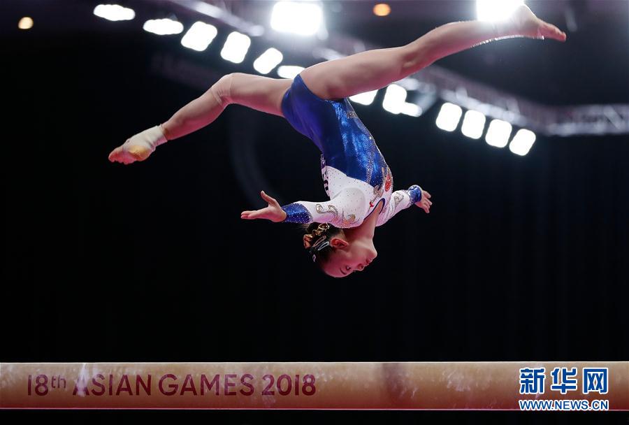 8月24日,第18届雅加达亚运会体操比赛收官。在五个比赛日中,中国体育代表团体操健儿表现精湛,收获8枚金牌,在总数14枚的体操金牌榜上占去大半。 图为8月24日,中国选手陈一乐在第18届亚运会体操女子平衡木决赛中。陈一乐获得金牌。 新华社记者王丽莉摄