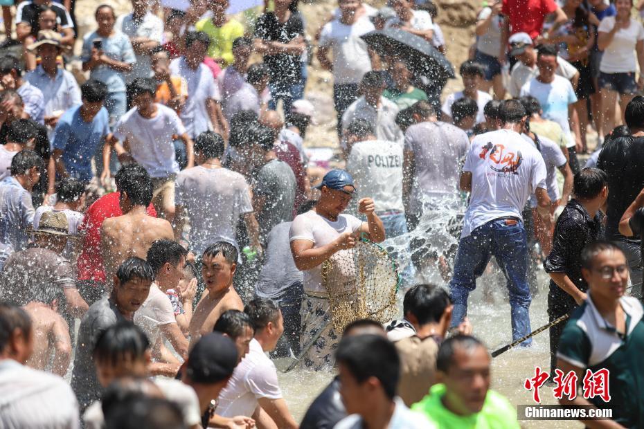 8月25日,苗族同胞泼水祈福。当日,2018贵州福泉·王卡苗寨贵州省级非物质文化遗产“杀鱼节”在福泉市仙桥乡王卡村清水江边举办。“杀鱼节”是渔猎文化向农耕文化过渡的文化遗存,被誉为人类远古集体渔猎生活的“活化石”。中新社记者 瞿宏伦 摄