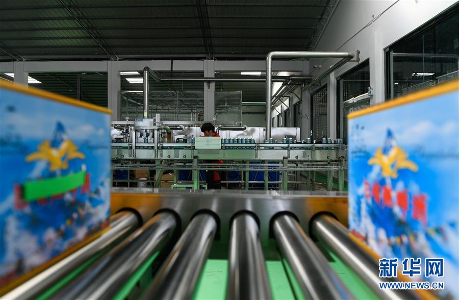 这是西藏日喀则啤酒厂生产车间一角(8月25日摄)。 西藏日喀则啤酒厂是由当地人创办的一家啤酒厂。啤酒厂靠山而建,水源来自海拔4200米的山泉水。该厂现拥有全套自动化生产车间、灌装车间、发酵车间等。 据介绍,啤酒厂现吸纳当地近30名群众、20余名职业技术学校毕业的人员就业,还有5名来自百威英博啤酒公司的酿酒师作为技术指导。 新华社记者刘东君摄