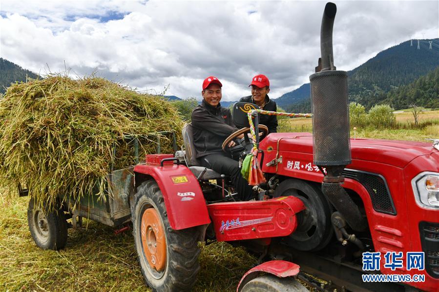 近日,西藏林芝市巴宜区牧草丰收,当地农牧民抓紧收储牧草,为牲畜准备越冬“口粮”。 新华社记者 张汝锋 摄