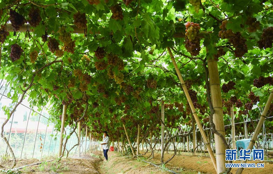 8月26日,松桃苗族自治县长坪乡兴隆村村民刘平芝为葡萄浇水。 新华社发(龙元彬 摄)