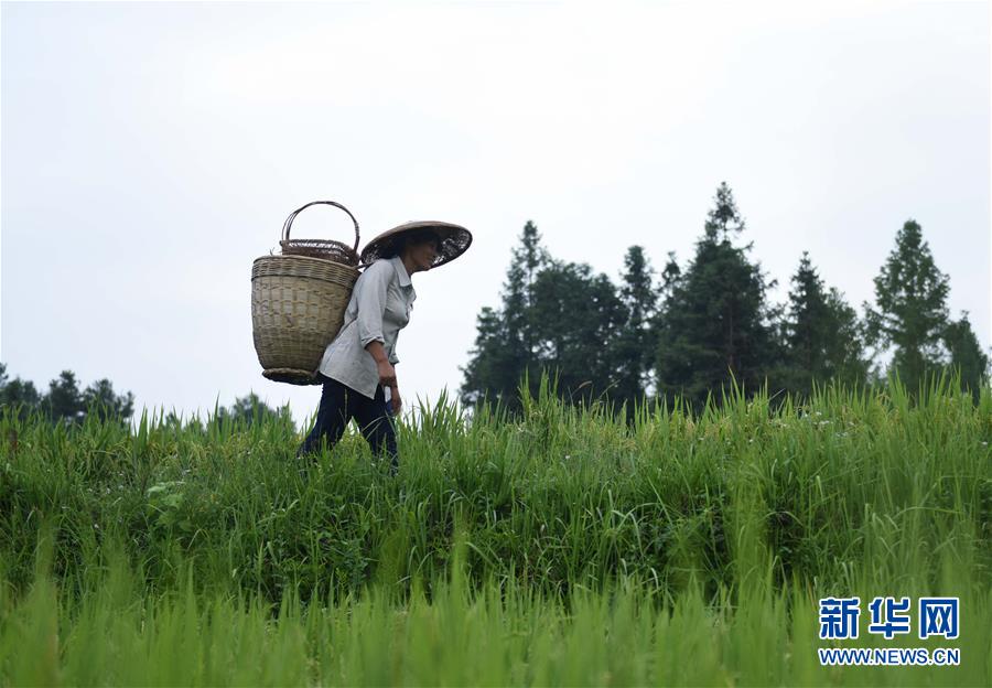 8月26日,松桃苗族自治县长坪乡兴隆村村民刘平芝采收辣椒后走在回家的路上。 新华社发(龙元彬 摄)