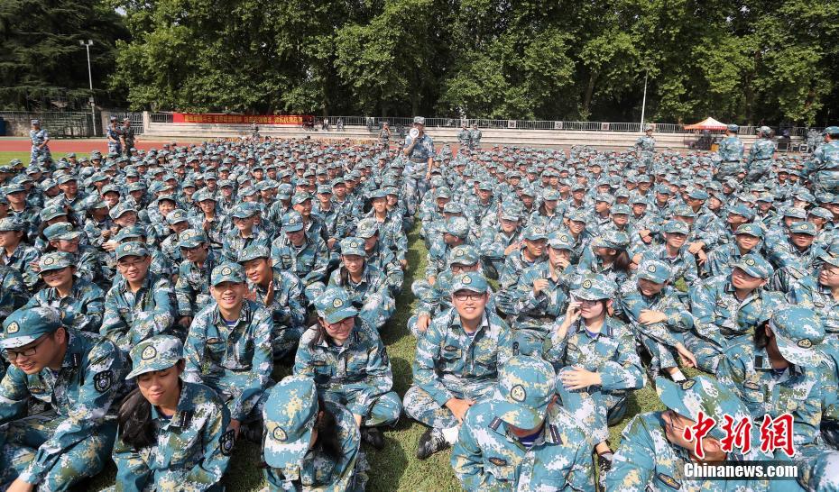 8月28日,武汉大学2018级新生正在军训。中新社记者 赵军 摄