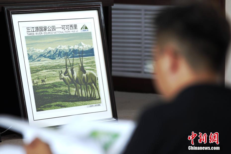 8月28日,三江源国家公园管理局在青海西宁发布该国家公园形象标识识别系统及长江源、黄河源、可可西里等宣传版画。图为世界自然遗产地可可西里版画。中新社记者 张添福 摄