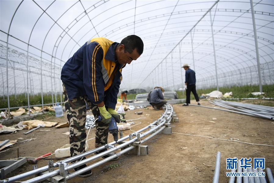 在固原市原州区彭堡镇姚磨村,村民在蔬菜基地搭建日光温室(8月27日摄)。 近年来,地处宁夏回族自治区南部山区的固原市原州区彭堡镇姚磨村,通过“基地+合作社+农户”的模式大力发展冷凉蔬菜产业。 目前,姚磨村已建成3个万亩冷凉蔬菜基地,同时带动12个村的1300多户农民共同发展冷凉蔬菜。2017年,姚磨村人均年收入1.35万元,80%以上的收入来自冷凉蔬菜产业。 新华社记者 王鹏 摄