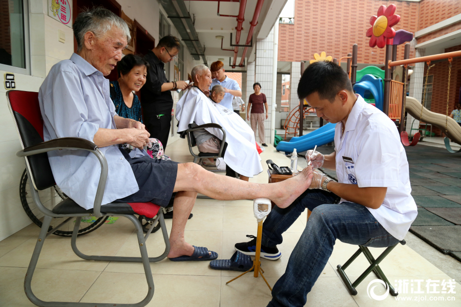 8月28日,东阳市南马镇花园老年公寓热闹非凡,一个名为“东阳戏迷演出队”的微信群友相约来此进行义演。消息传开,响应者众多,其他义演队以及理发、修指甲等志愿者也自发组织过来参与活动。(东阳日报记者 包康轩 拍友 周振平 摄)