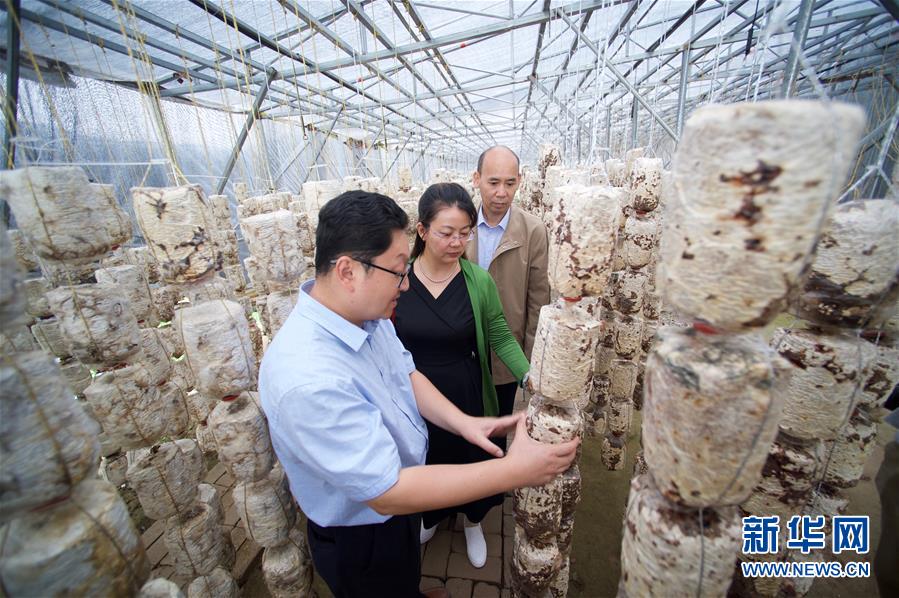 8月28日,宁夏农林科学院专家任怡莲(中)与福建省农业科学院专家何志刚(右一)、林戎斌在固原市原州区河川乡蘑菇棚进行技术交流。近日,福建省农业科学院、宁夏农林科学院专家走进宁夏回族自治区固原市企业山乡,开展特色农业产品综合利用关键技术对接及技术服务,助力固原林业、苗木、花卉、牧草等产业发展。新华社记者 姜克红 摄