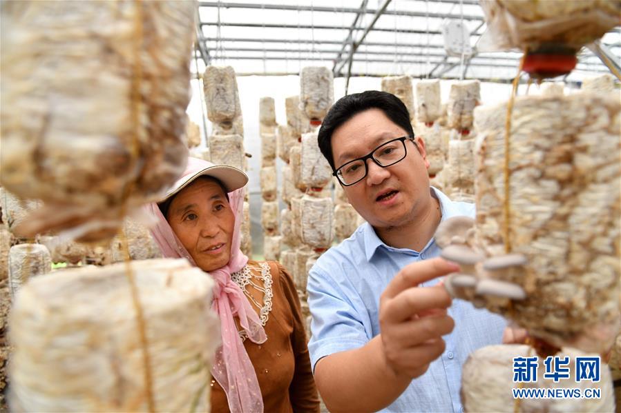 8月28日,福建省农业科学院专家林戎斌(右)在向固原市原州区河川乡康沟村村民海向梅传授蘑菇种植技术。近日,福建省农业科学院、宁夏农林科学院专家走进宁夏回族自治区固原市企业山乡,开展特色农业产品综合利用关键技术对接及技术服务,助力固原林业、苗木、花卉、牧草等产业发展。新华社记者 郭绪雷 摄
