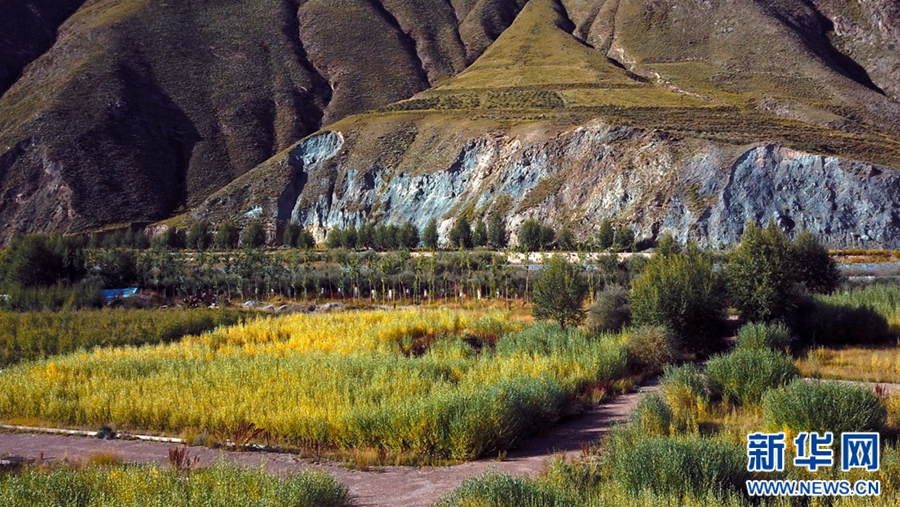 航拍玉树高原千亩林木良种繁育实验基地一角。