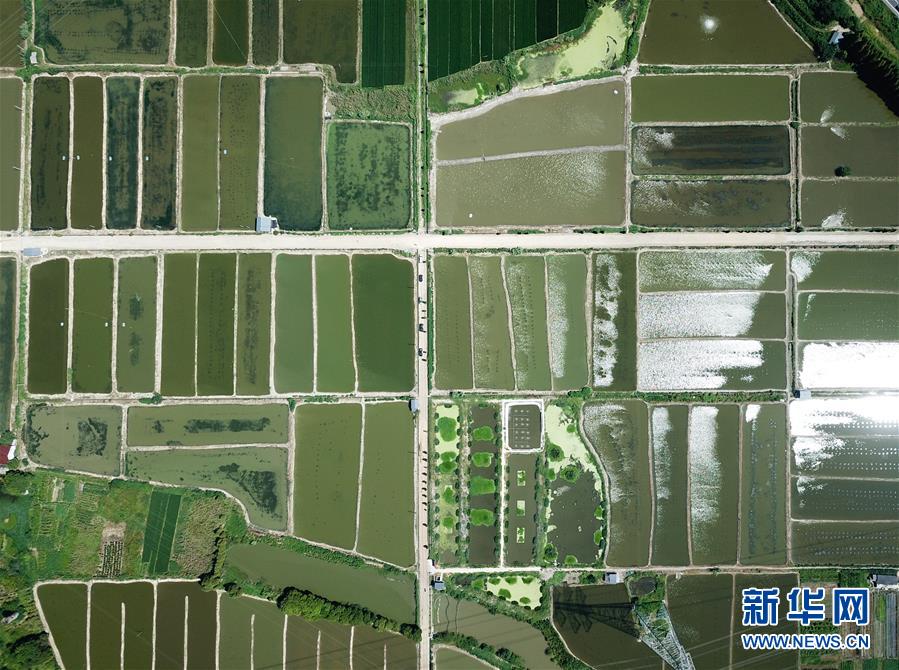 这是吴兴区道场乡红里山村350亩养殖尾水处理功能区(8月29日无人机拍摄)。 浙江省湖州市吴兴区把渔业养殖尾水治理和美丽乡村建设相结合,推进鱼塘生物净水功能建设,规范养殖尾水的生态净化和达标排放。目前,吴兴区各乡镇养殖尾水治理开工面积5.6万亩,开工率100%,已有4万亩完成竣工,实现养殖尾水达标排放。 新华社记者翁忻旸摄