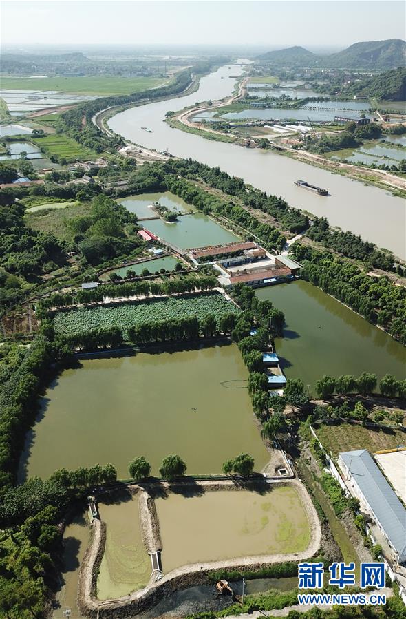 这是吴兴区道场乡钱山下村钱山渔庄正在建设的养殖尾水处理功能区(8月29日无人机拍摄)。 浙江省湖州市吴兴区把渔业养殖尾水治理和美丽乡村建设相结合,推进鱼塘生物净水功能建设,规范养殖尾水的生态净化和达标排放。目前,吴兴区各乡镇养殖尾水治理开工面积5.6万亩,开工率100%,已有4万亩完成竣工,实现养殖尾水达标排放。 新华社记者翁忻旸摄