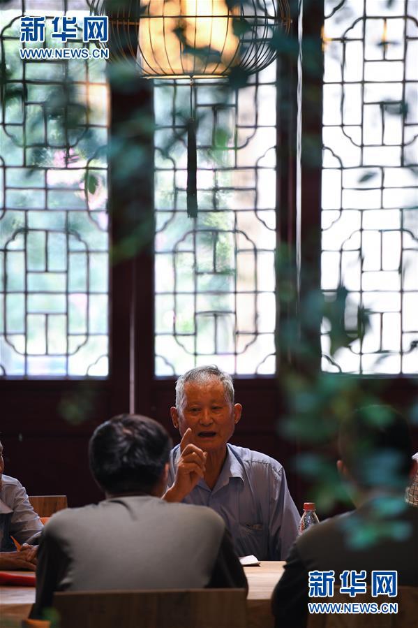 8月29日,即将应征入伍的新兵在浙江省湖州市吴兴区道场乡施家桥村乡村振兴讲习所聆听老兵追忆军旅生活。 新华社记者翁忻旸摄