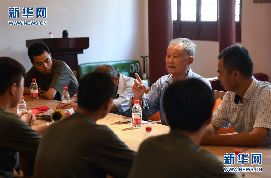 8月29日,即将应征入伍的新兵在浙江省湖州市吴兴区道场乡施家桥村乡村振兴讲习所聆听老兵追忆军旅生活。 新华社记者翁忻旸摄