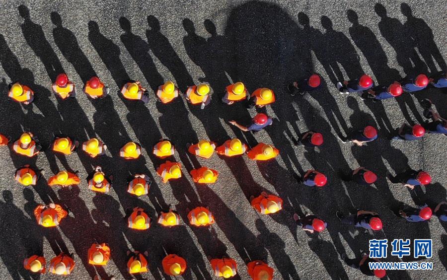 8月29日,中铁二十局的建设者参加贯通仪式(无人机拍摄)。 当日,兴延高速公路石峡隧道左线贯通。兴延高速公路南起北京西六环兴隆口,向北到达延庆。石峡隧道左线长5746.5米,位于北京昌平与延庆交界的山岭中,它的贯通为兴延高速公路整体工期目标的完成提供了有力保障。 新华社记者邢广利摄