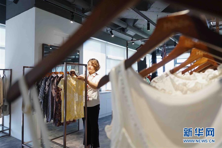 在位于无锡的江苏红豆国际发展有限公司,工作人员在整理样品服装(8月24日摄)。 新华社记者 季春鹏 摄