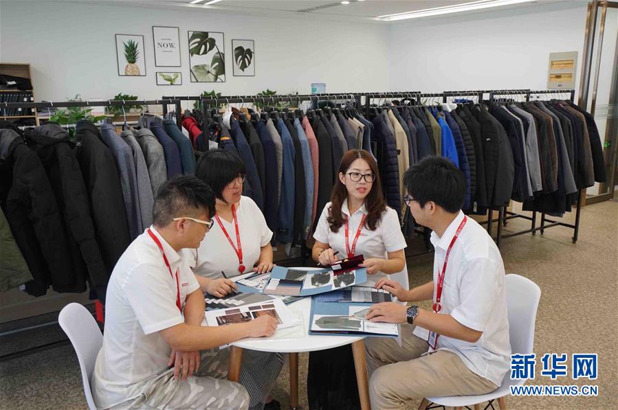 在位于无锡的江苏红豆国际发展有限公司,研发人员在进行业务研讨(8月24日摄)。 新华社记者 季春鹏 摄