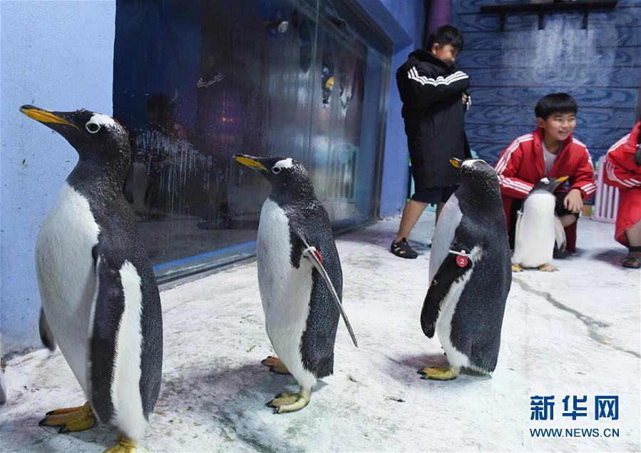 8月29日,孩子们在青岛海昌极地海洋公园企鹅馆内与企鹅亲密接触。 当日,青岛海昌极地海洋公园企鹅学园举行“关爱极地动物,呵护两极生态”科普公开课,向少年儿童介绍极地动物的种类、习性和分布,以及全球气候变暖给两极带来的危害等科普知识,培养孩子们关爱极地动物、保护生态环境的意识。 新华社记者李紫恒摄