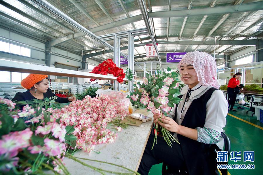 8月29日,工人在宁夏隆德人造花工艺有限公司制作人造花。 新华社记者姜克红 摄