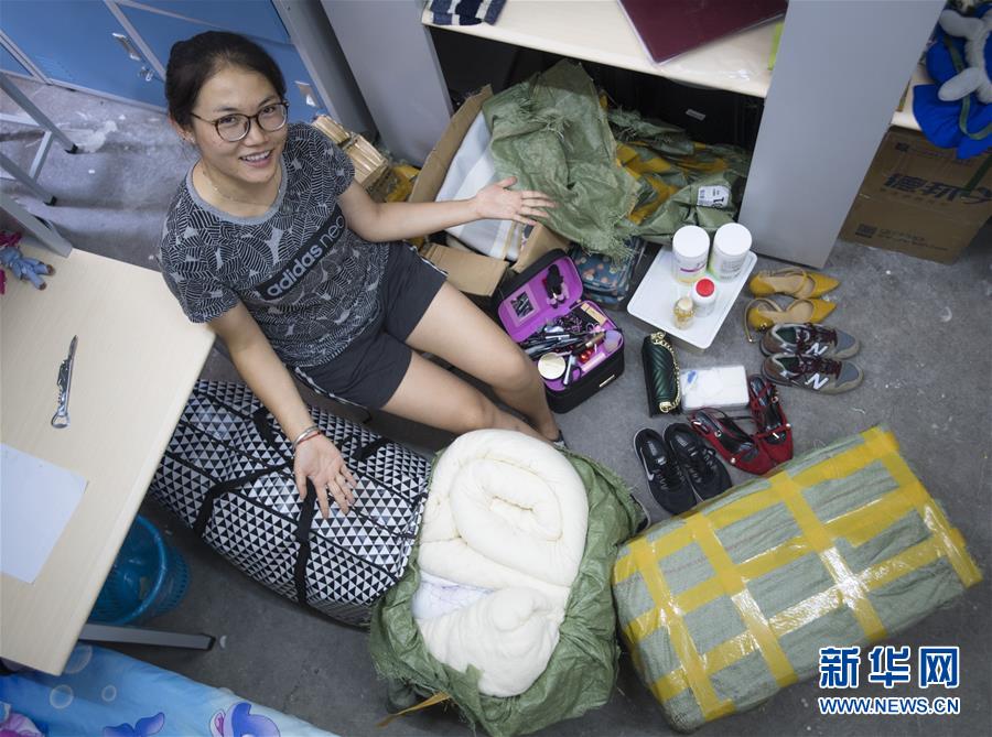 8月28日,来自四川攀枝花的华中农业大学研一新生杨小源在宿舍内展示从家中邮寄的生活用品。 近日,华中农业大学迎来开学季,借助快捷便利的物流,许多新生提前将行李邮寄到学校,轻装上阵入学报到。 新华社记者肖艺九摄