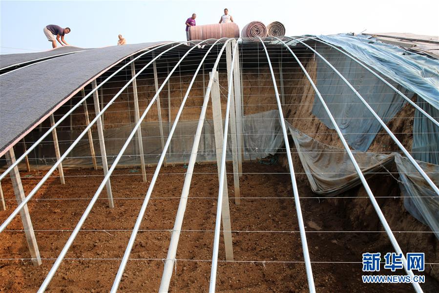8月29日,寿光市孙家集街道菜农在一处蔬菜大棚上覆盖棉被。 目前,山东省寿光市孙家集街道部分受灾轻微的菜农正在抓紧恢复农业生产。近日,受“摩羯”“温比亚”台风叠加影响,山东省13市81个县(市、区)的635个乡镇(街道),不同程度遭受洪涝灾害,潍坊寿光、青州、临朐等地受灾最重。 新华社发(许丛军 摄)