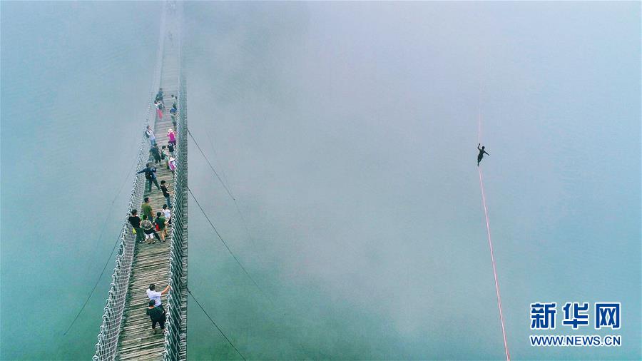 8月25日,扁带高手在浙江省仙居县神仙居景区参加比赛。 新华社发(朱成 摄)