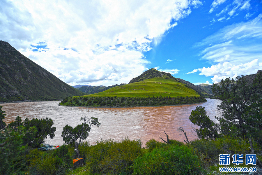 通天河在流经曲麻莱县巴干乡夏日寺时拐了一个大弯,留下了壮美的景色。