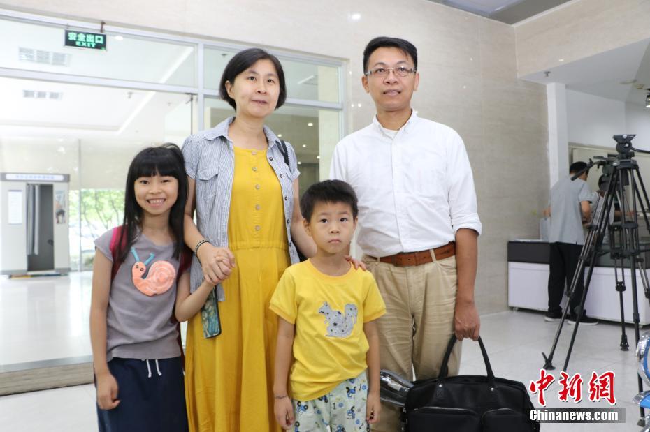 9月1日,台胞王智麟一家四口早早来到安徽省合肥市公安局包河分局户政大厅,申领安徽省第一张《港澳台居民居住证》。图为王智麟一家四口。中新社记者 赵强 摄