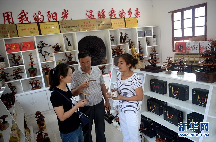 罗婵(右一)在寺耳镇公司的展厅向客户介绍自己的产品(8月31日摄)。 新华社记者刘潇摄