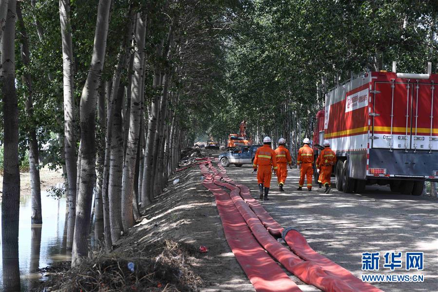 消防人员在寿光市稻田镇进行排水作业(8月31日摄)。 新华社记者 朱峥 摄