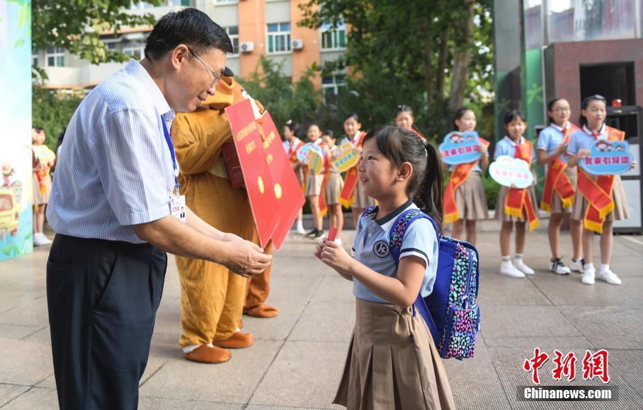 9月3日,济南的山东师范大学附属小学校长给新生发放种子“红包”。当日,济南市多所中小学迎来新学期开学。 中新社记者 张勇 摄