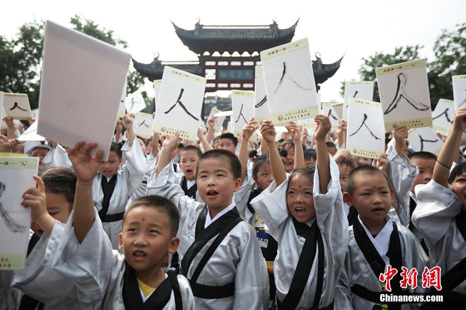 祭拜孔子、学写“人”字、朱砂开智、聆听师长寄语。9月2日,南京夫子庙小学的一年级新生来到夫子庙大成殿前举行开笔礼,孩子们通过仪式接受“尚礼”传统文化教育,由此正式成为一名学生。 泱波 摄