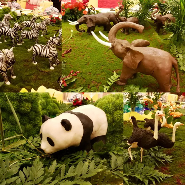 餐席之间,还精心摆设了体现中非友好的微型桌饰景观。