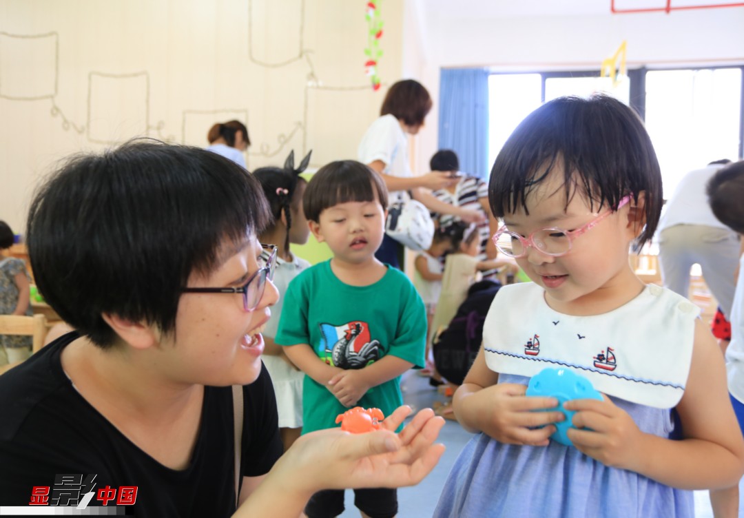 4日清早,福建漳州芗城区东铺头中心幼儿园开园,亲子游戏中,一名小朋友跟妈妈亲密互动。新华网 肖和勇 摄