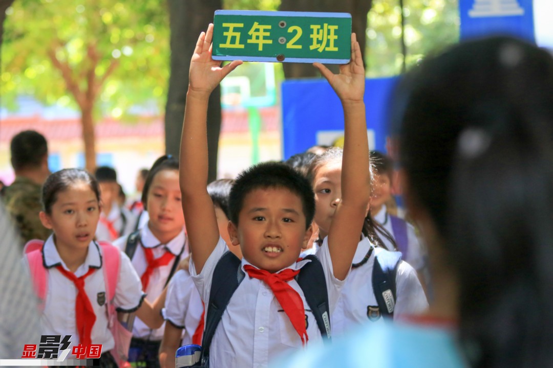 3日中午,在福建省漳州市实验小学门口,一名五年级的男生举着班级号牌,等待家长。新华网 肖和勇 摄