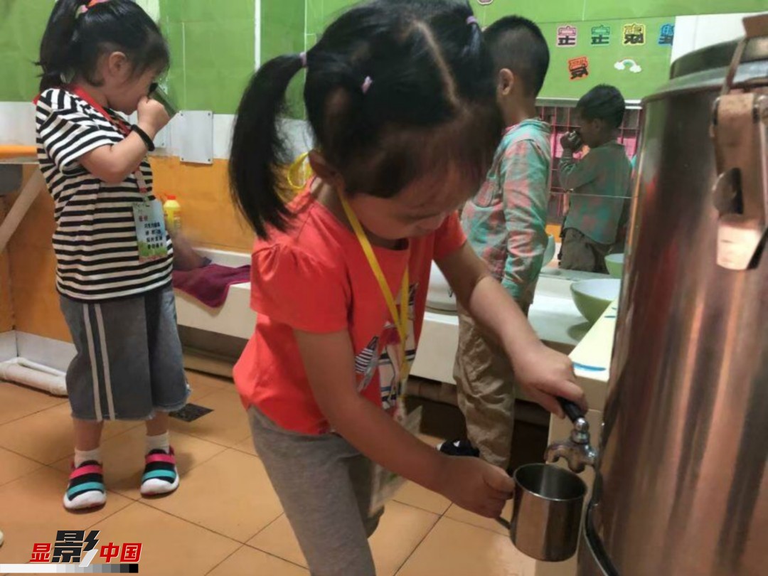 图为甘肃省兰州市城关区保育院小四班的一名小朋友独立接水解渴。爸爸妈妈放心吧,你们不在身边的时候,孩子们也能照顾好自己。