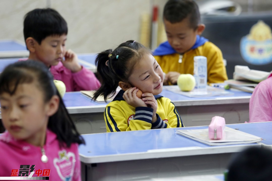 图为兰州新区第一小学一年级新生正在等待开课。新华网发 丁凯 摄