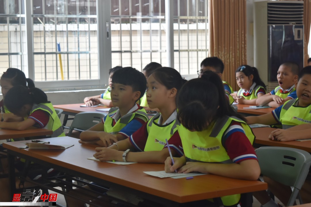交警给三元里小学的学生们分享红绿灯的起源故事。新华网发 杨硕摄