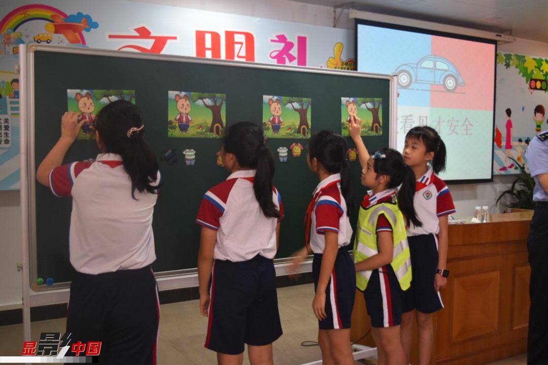 三元里小学的学生们正在进行“被看见才安全”的互动游戏。新华网发 杨硕摄