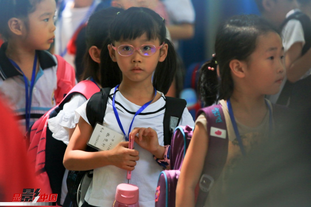 3日中午,福建省漳州市实验小学,一名一年级新生在校门口等待家长。新华网 肖和勇 摄