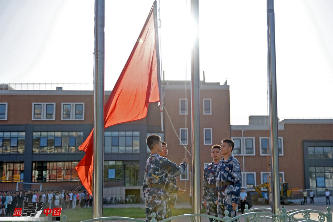 图为石家庄市第二中学举行升旗仪式,迎接新学期。新华网发 梁毽摄