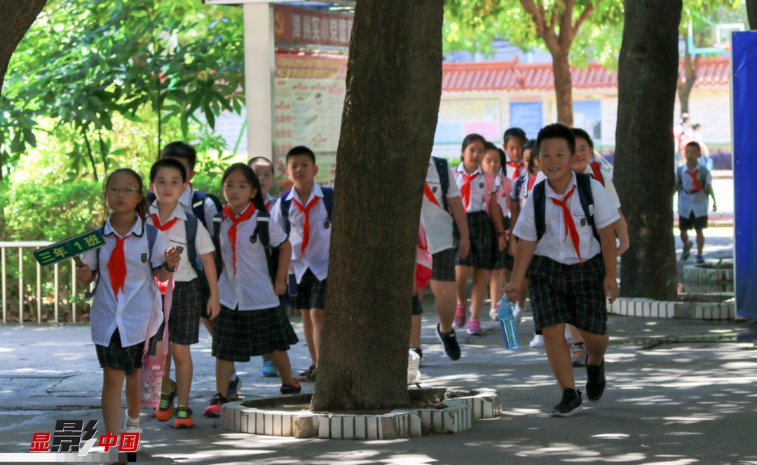 3日中午,福建省漳州市实验小学的学生在放学后走出教室。新华网 肖和勇 摄