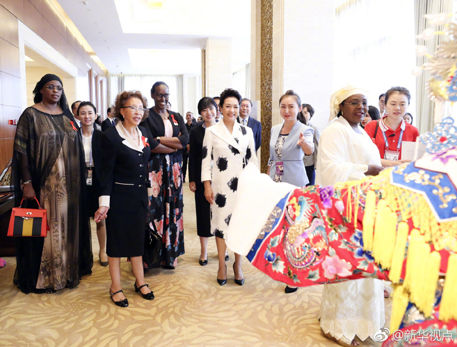 国家主席习近平夫人彭丽媛4日下午与卢旺达总统夫人珍妮特共同参观国家大剧院。两人参观了歌剧院、公共大厅,并在大剧院独具特色的椭圆形巨型玻璃幕墙前合影留念。在音乐厅,彭丽媛和珍妮特共同聆听了国家大剧院合唱团的演唱。(记者白洁 燕雁)