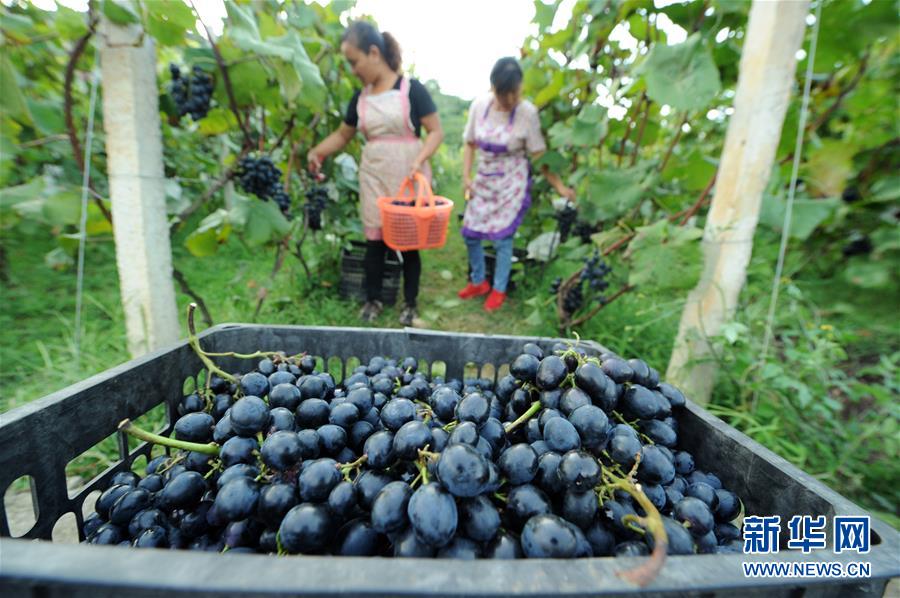9月4日,果农在贵州省黔西县太来乡一家葡萄种植基地采摘葡萄。 新华社发(杨文斌 摄)