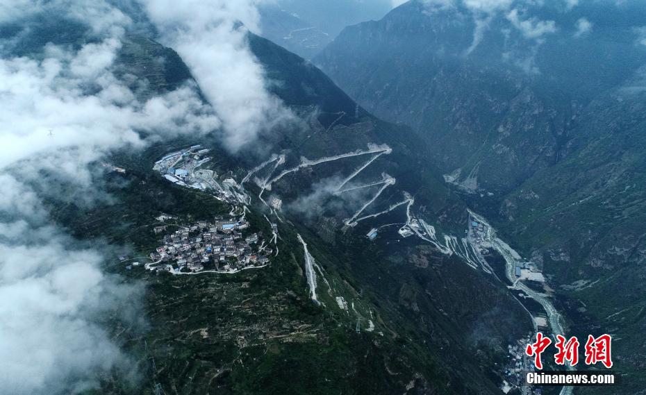 9月5日,四川康定,空中俯瞰雅康高速泸康段大杠山隧道建设的便道公路24道拐。当日,四川雅康高速泸定至康定段“隧道群”、大渡河兴康特大桥建设进展加快,大桥进入柏油路面铺设和护栏安装等阶段,10座隧道也进入攻坚建设关键期,雅安至康定高速公路预计2018年底将建成通车。中新社记者 刘忠俊 摄