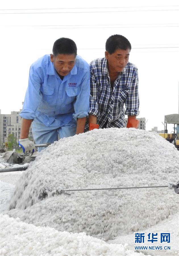近日,江苏连云港数十万亩盐田全面进入秋季扒盐作业阶段。工人们忙碌着收获原盐,盐田中一派繁忙景象。