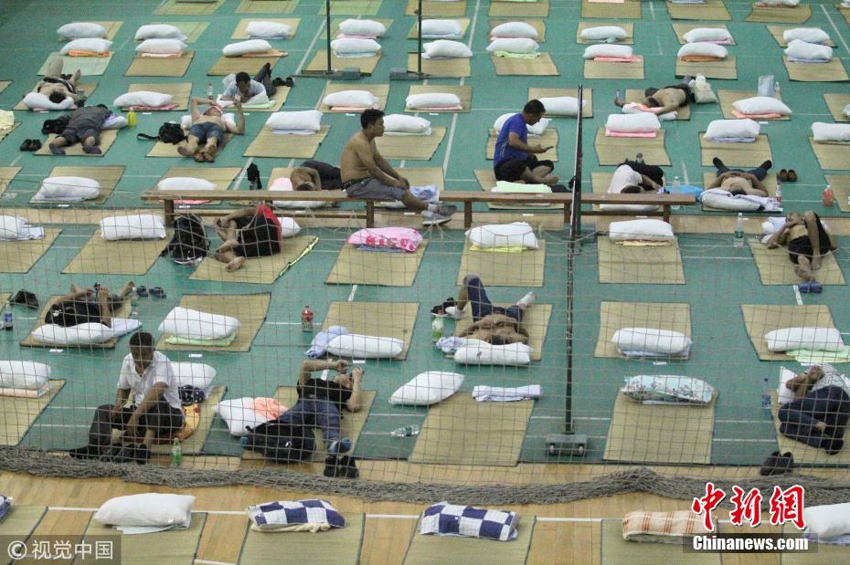 由于开学季学校周边宾馆涨价,不少家长为了省钱,选择在学校打地铺过夜,也有的家长因为找不到宾馆过夜,不得不前来学校体育馆打地铺。 图片来源:视觉中国