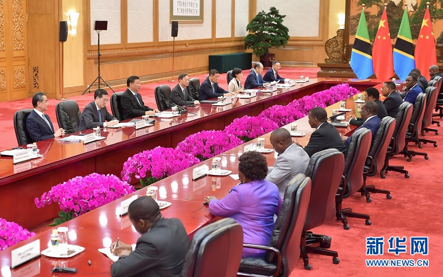 9月6日,国家主席习近平在北京人民大会堂会见坦桑尼亚总理马贾利瓦。 新华社记者 李涛 摄